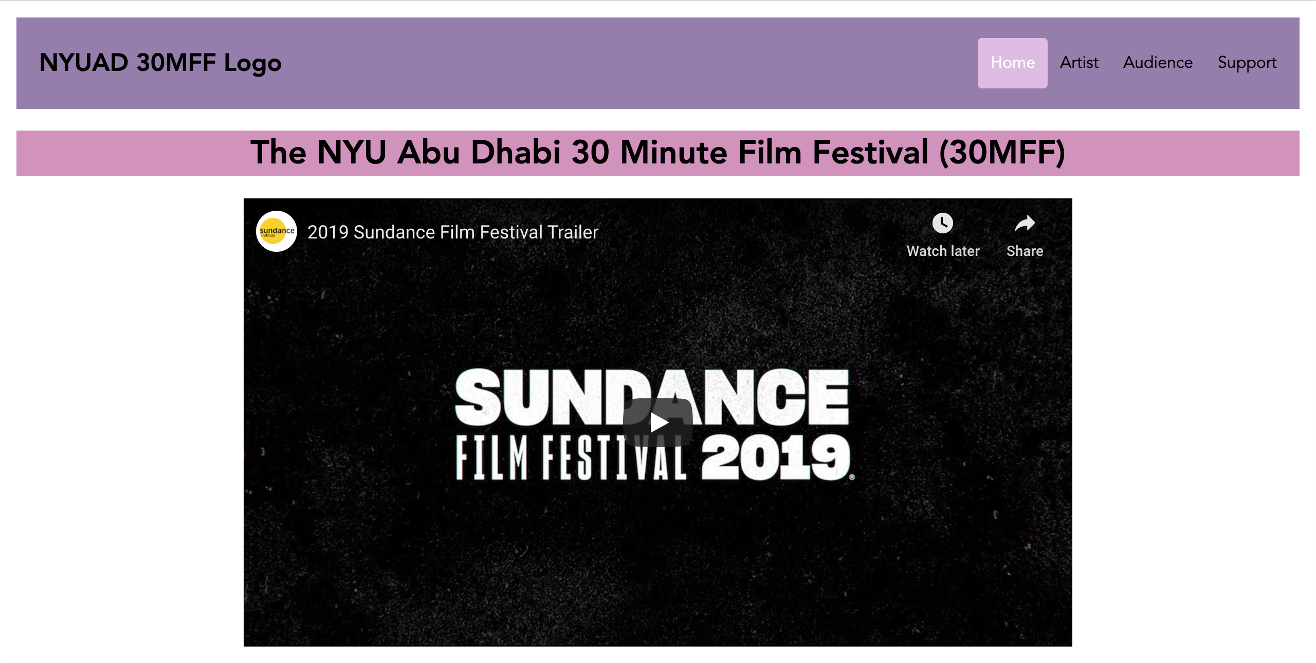 The objective of this assignment was to create a website to house and debut the short video that we made in our first Communications Lab class. I decided to house the video by creating a page for a whole (fake) 30-min film festival happening in NYUAD, thereby extending the scope of the video itself.
